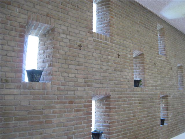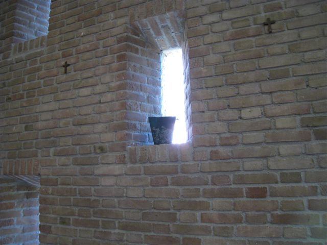 Binnen is de kapel nog ongemoeid gelaten. Het altaar is mooi in een apsis geplaatst en krijgt van boven prachtig daglicht. Ook de mooie lichtspleten verspreid over de metselwerk wanden hebben een sfeervolle werking. Het raam is van kunstenaar Jan Dijker. De apsis is binnen rond maar buiten vierkant gehouden en heeft daar een mooi stalen kruis gekregen.