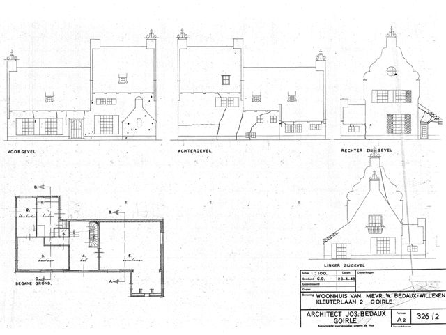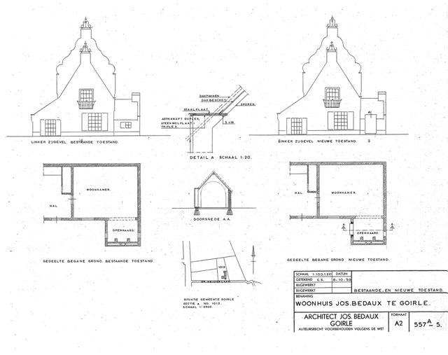 Het eigen woonhuis van Jos.Bedaux is al een aantal jaren rijksmonument. Eerst bouwde Bedaux in 1937 in uitbundig romantische stijl het woonhuis dat hij in 1950 aan de achterzijde uitbreidde met een tekenkamer in een strakkere classicistische stijl met zelfs modern aandoende gevelvullende ramen. Tot slot bouwt hij dan in 1960 helemaal achter in de tuin, achter een ommuurde binnenplaats, zijn privékantoor dat van buiten maar ook van binnen een modernistisch uitstraling heeft. Hier zien wij in één gebouw de architectuur-ontwikkeling van Bedaux kort samengevat.