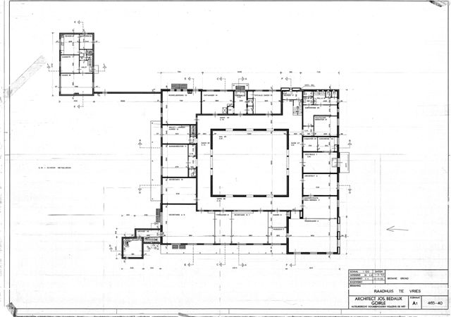 In 1953 kreeg Bedaux de opdracht voor dit raadhuis, na een besloten prijsvraag, en pas vele jaren later is het in 1966 gerealiseerd. In 1981 is er nog een achtervleugel aangebouwd.