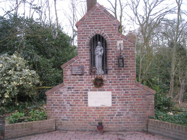 Al hebben wij in ’t bouwvak nie veul te vertellen, Toch bouwen we heel Brabant vol schone kapellen, En al is ’t wat krom, mee wat deuken d’r in, Daar zit ‘m nou ’t artistieke net in. Aldus de Tilburgse studenten die dit kapelletje in 1933 bouwden. Dit is de eerste kapel die het Brabants Studentengilde bouwde toen het instituut Sainte Marie van 26 tot 30 juli 1933 zijn studiedagen hield. Jos Bedaux zou als aankomend architect menig studentenkapel gaan ontwerpen. In de hof van het ouderlijk huis had hij eerder al een Mariakapelletje gebouwd dat nu als duplicaat, zij het in vergrote vorm, kon worden overgenomen. Zonder bestek en tekeningen werd het bouwseltje in vier dagen tijd gebouwd, waarbij ook de broers van Jos. de helpende hand boden. Bron: langs ’s heren wegen.