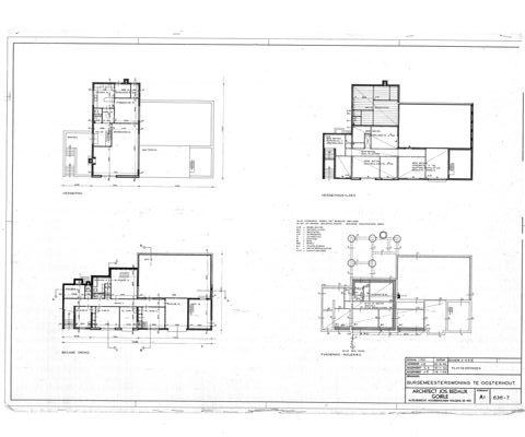 Het huis is aan de linker zijde verbreed waardoor de trap naar links moest opschuiven. De inpandige garage rechts is de entree geworden van een dokterspraktijk. Een kleine binnenplaats en een stuk van de grote patio zijn bij de praktijkruimte getrokken. Inmiddels is de praktijk een zelfstandige woning geworden. We vragen ons af of de ramen altijd een zwarte kleur hebben gehad. Het zwart van de schoorsteen lijkt in ieder geval niet origineel. Alweer een prachtig huis.