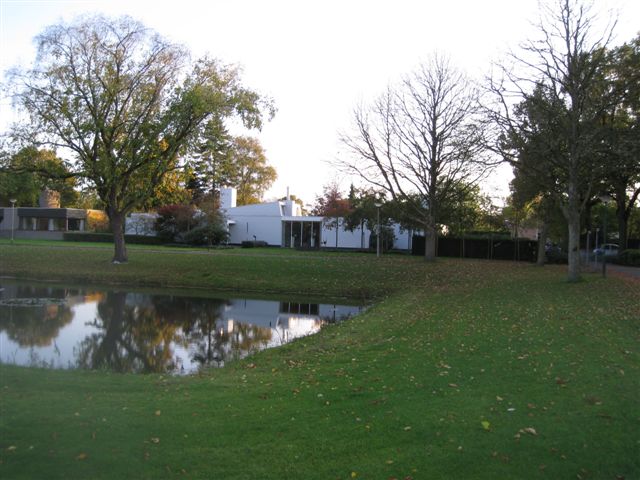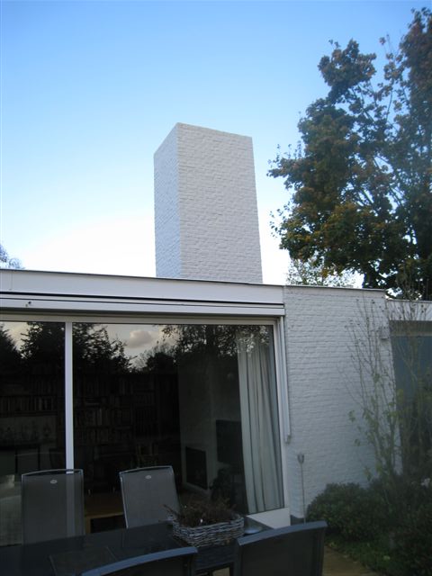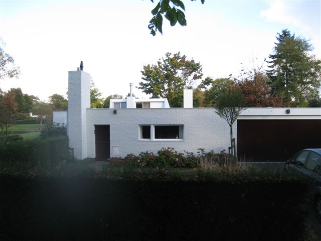 Een heel bijzonder huis en mooi gelegen. Zou in het oeuvre van Le Corbusier niet misstaan. Het is echter een onmiskenbare moderne Bedaux. Het metselwerk zoals altijd in Vlaams verband, gecementeerd en wit geschilderd. De afwisseling van gesloten gevels en lange glazen puien en de uitgebouwde entree. Ook binnen een mooie plattegrond met gangen om de hoofdslaapkamer die van bovenaf zijn daglicht krijgt.