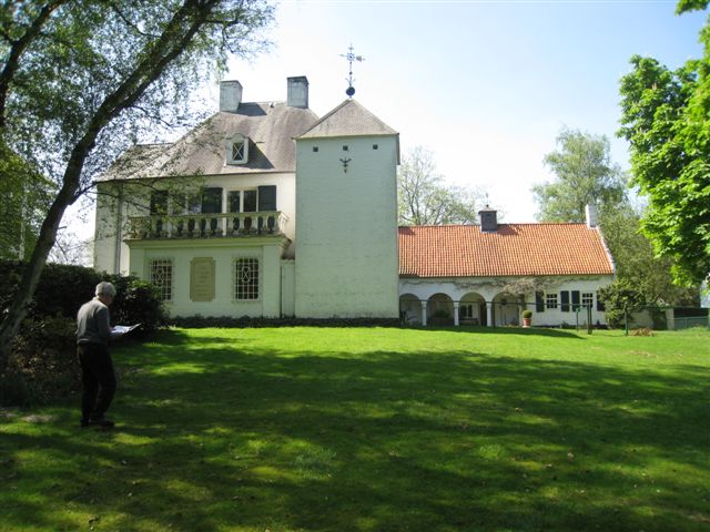 Maar wat een prachtige nederzetting. In de achtergevel van het woonhuis rondboogramen voorzien van luiken, die in geopende stand weer nieuwe rondbogen opleveren. De woonkamer en de eetkamer zijn met een gang gescheiden van de tuin. Deze gang wordt in de winter gebruikt om planten te laten overwinteren. In de zomer staan alle deuren van de gang en de kamer open en heb je zo direct contact met de tuin.