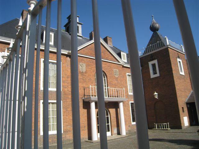 Het raadhuis werd op een smal kavel gezet. Het bestuurlijk representatieve deel werd aan de voorkant gesitueerd, het kantorengedeelte aan de achterkant, achter de binnenplaats.